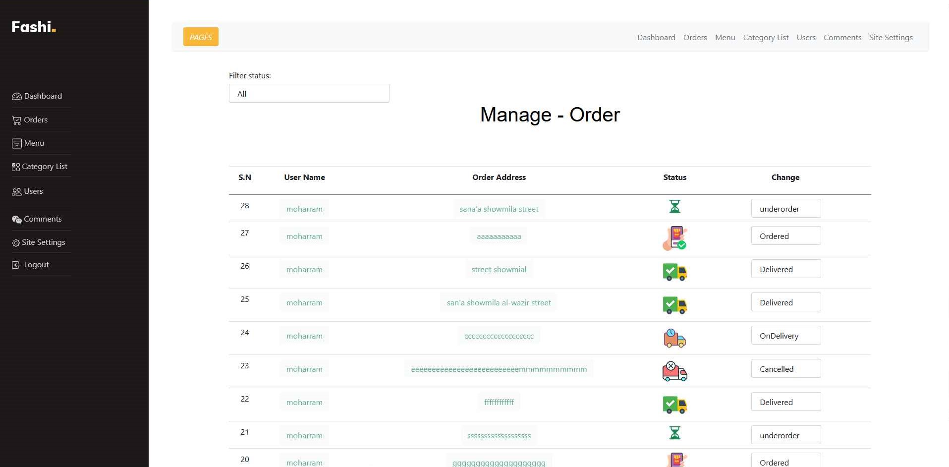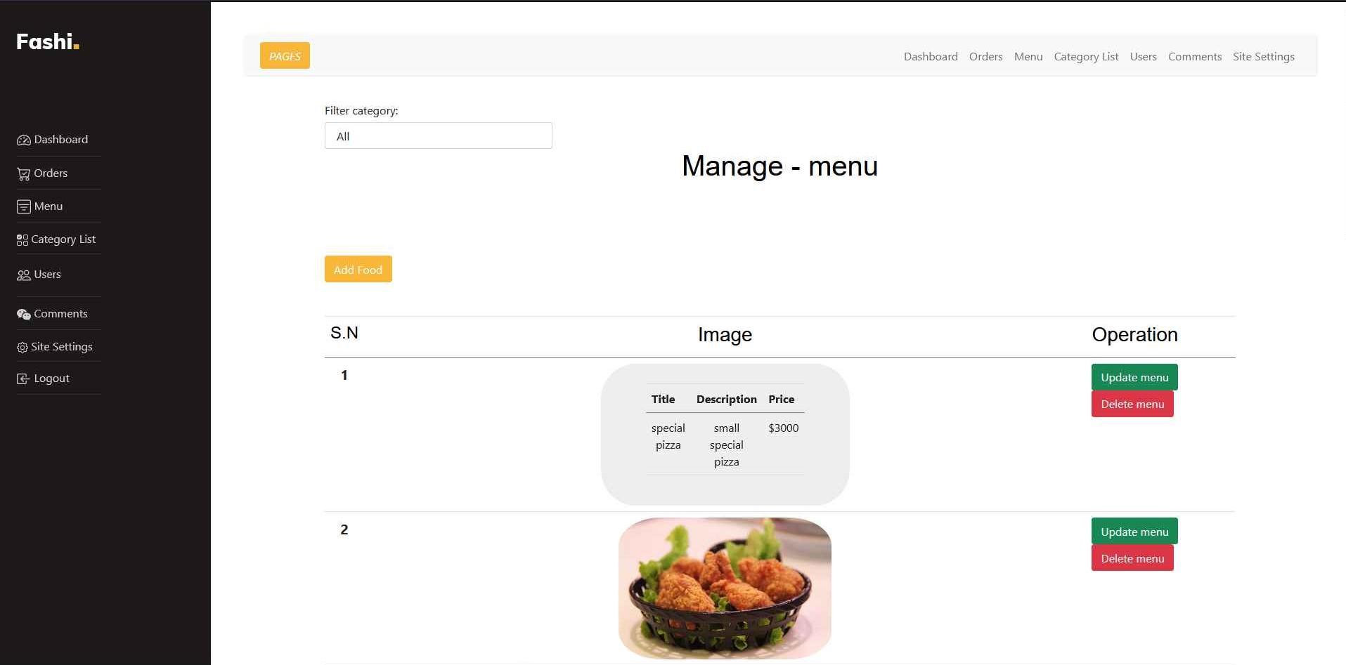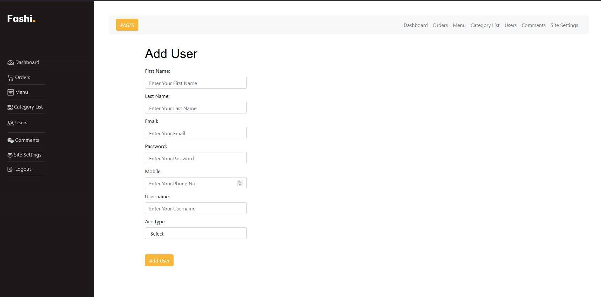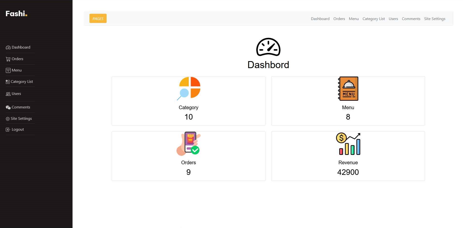 make action and cooking the food for customers. This site called Fashi Dashboard and it has many