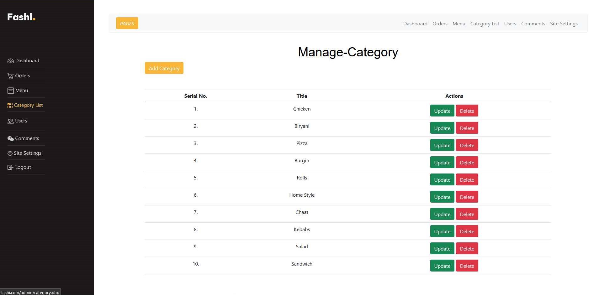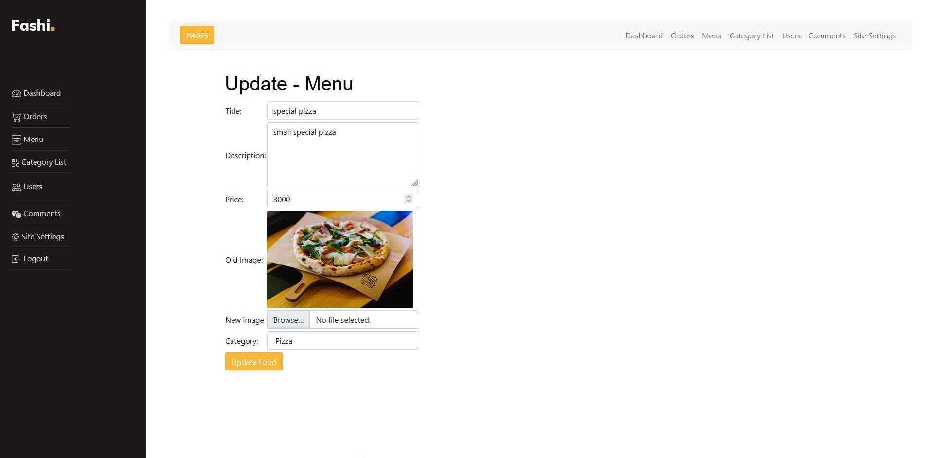 editing categories and foods menu. Also, they have a page to adding new users and admins.
