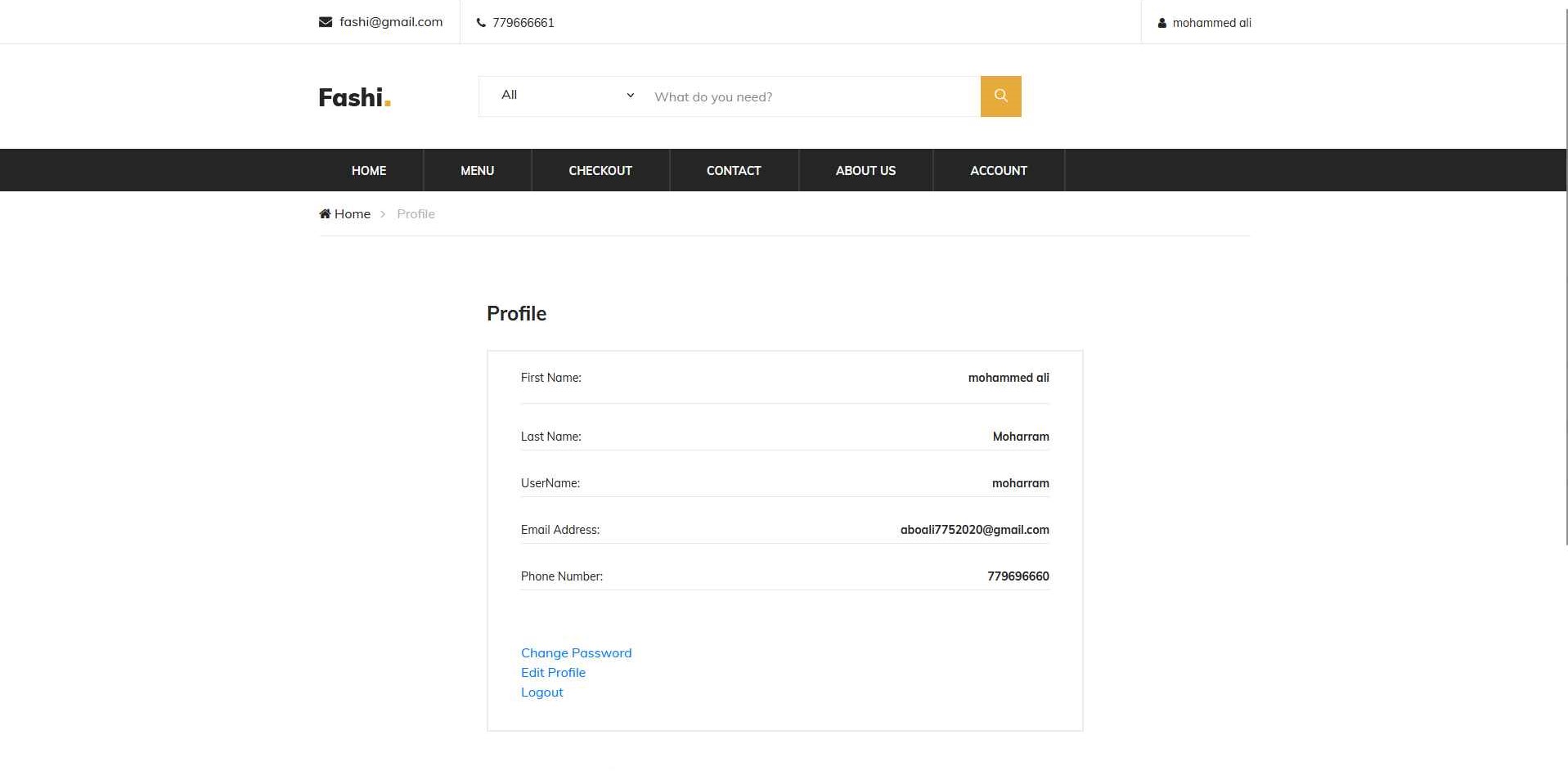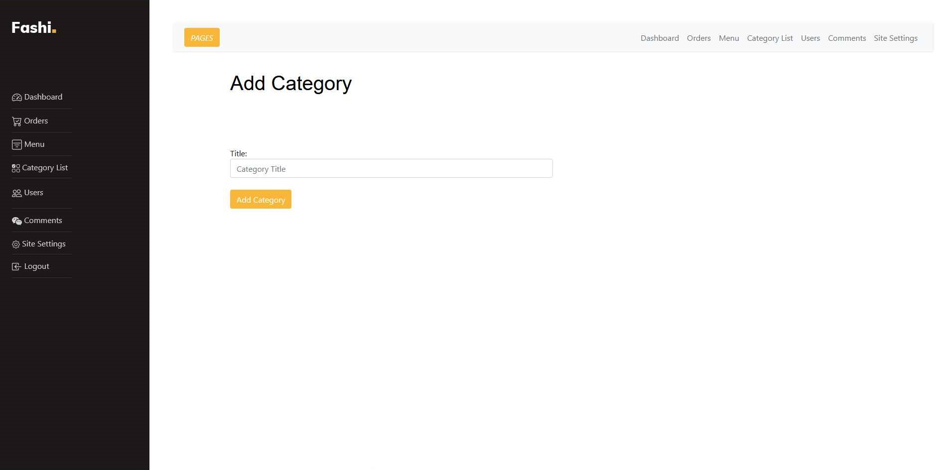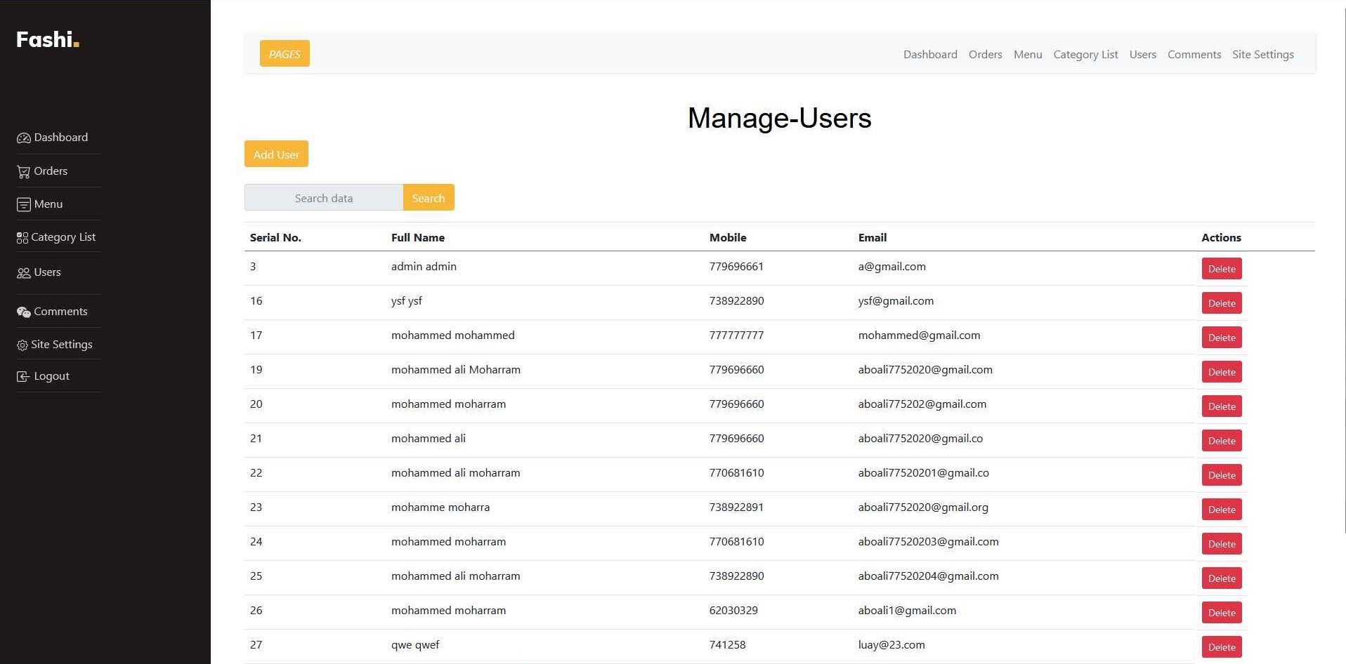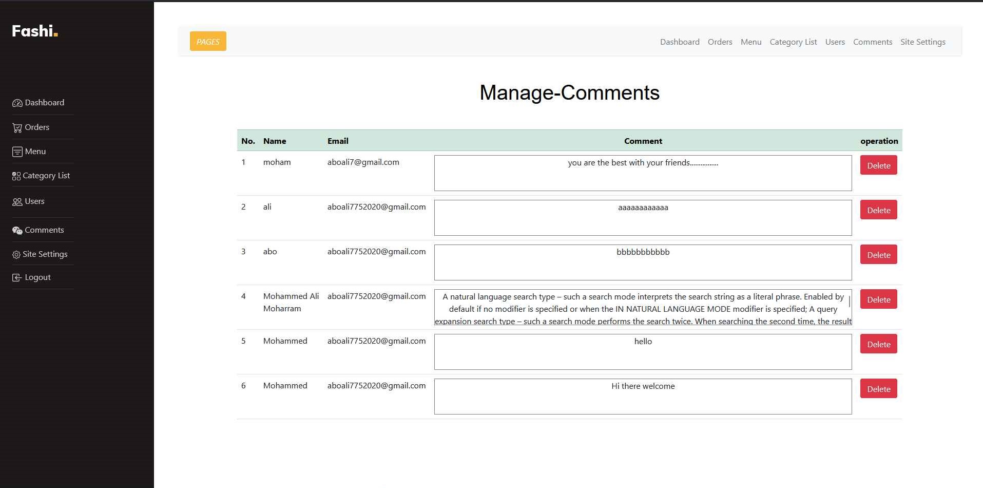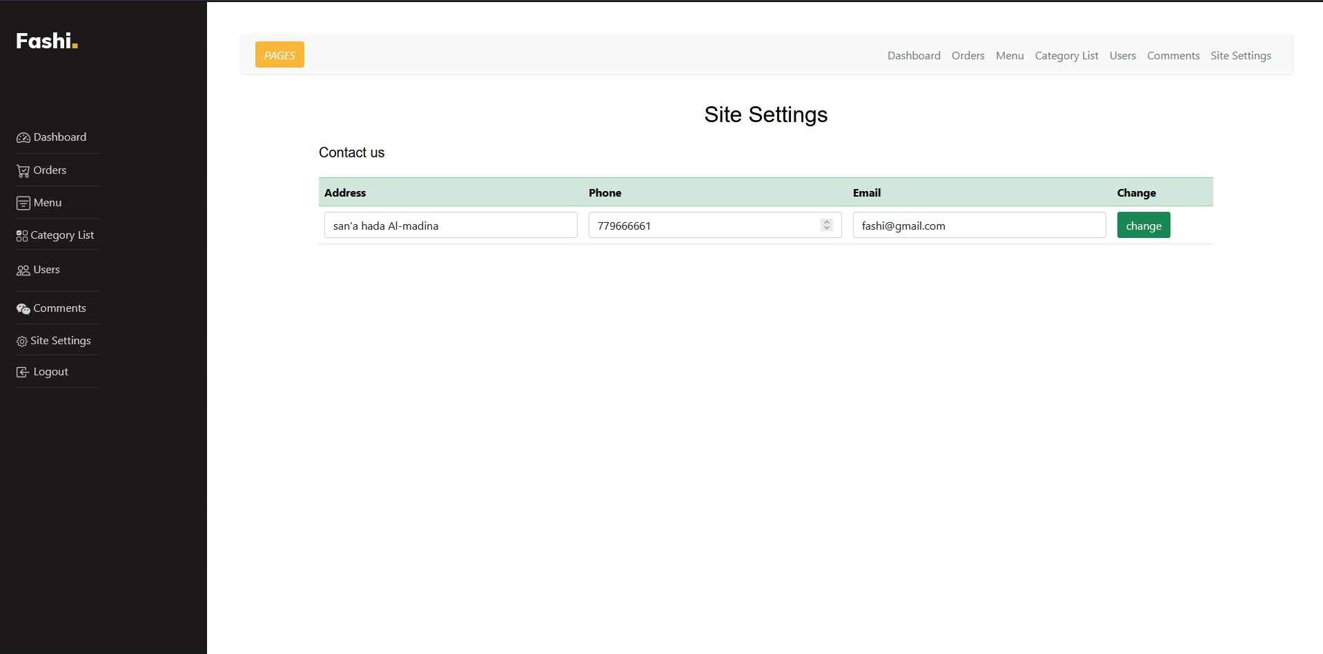 main site setting like phone and email. Fashi Dashboard has specialized pages for adding and deleting